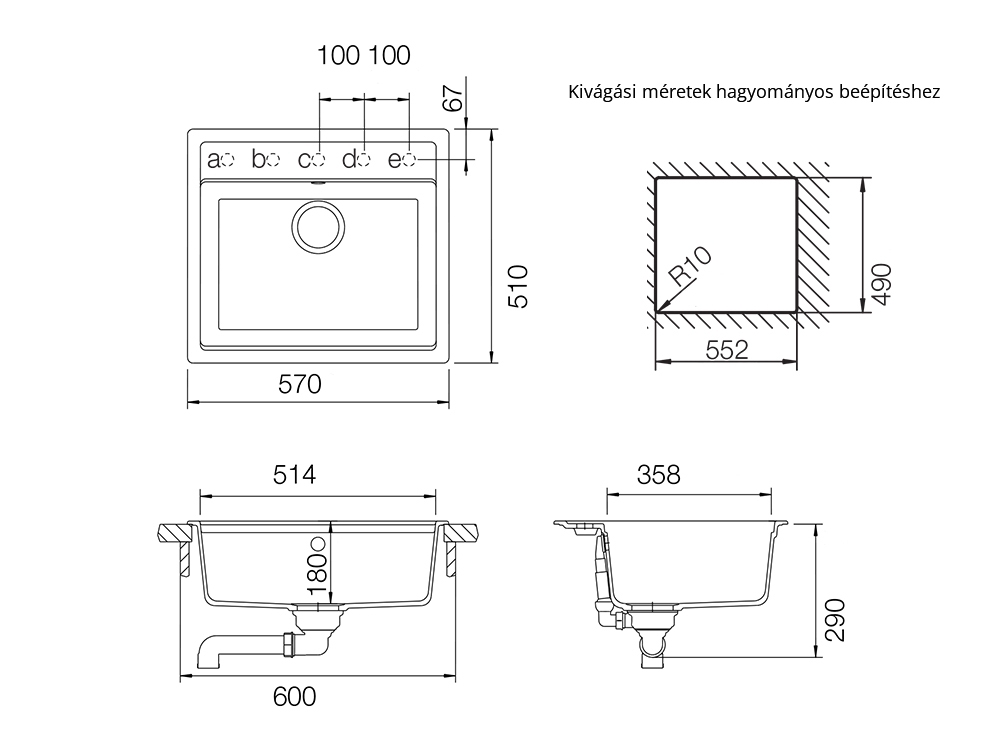 Tartozékok: lefolyógarnitúra, szűrőkosaras lefolyó, lefolyó, rögzítőkarmok
