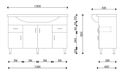 Tboss Bianka 130 fürdőszobabútor komplett szett Alsó szekrény mosdóval + Tükrös felsőrész Magasfényű, fóliázott MDF Kerámia mosdó Beépített világítással: kettes szpotlámpa /2x20W/ trafóval és kapcsolóval egybeépített konektorral lámpatakaróval szerelt Fogantyú: króm íves Csaptelep nem tartozék Alapszínek: fóliázott MDF magasfényű fehér, erezett fehér, körte, juhar, bükk, cseresznye, calvados, szilva, dió, venge, tölgy Extra színek: Alapszínes ár +15% Színminta üzletünkben megtekinthető!