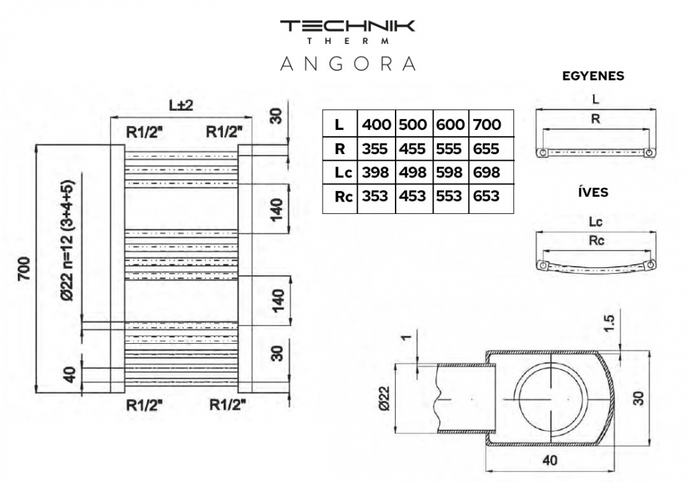 Technik Therm Angora törölközőszárító radiátor 500 mm x 1100 mm, egyenes, krómozott TTCSKEA-500-1100Technik Therm