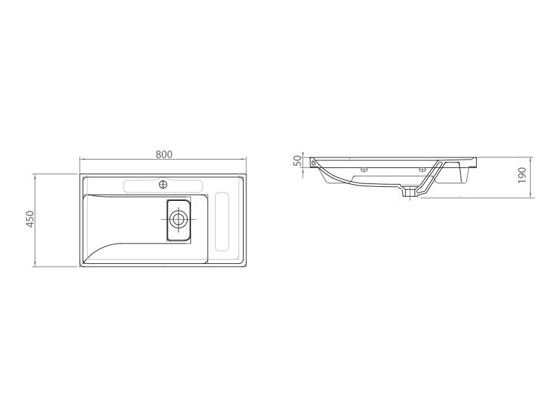 AREZZO design Texas 90x46 aszimmetrikus beépíthető mosdó jobbos AR-090J