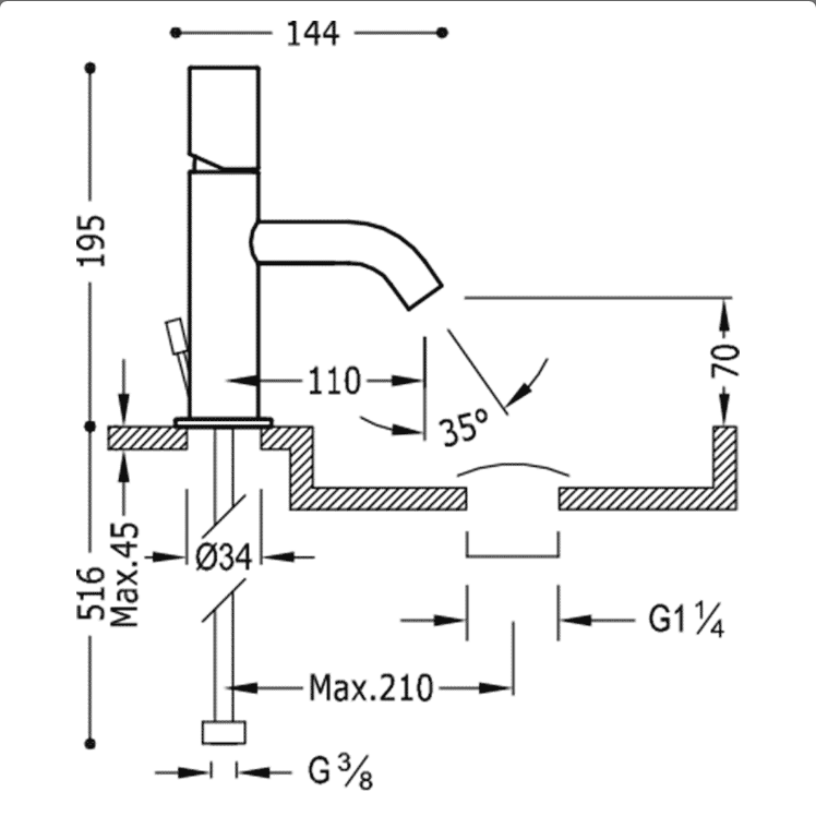 Tres Study Exclusive mosdó csaptelep leeresztő nélkül, steel 26190301AC