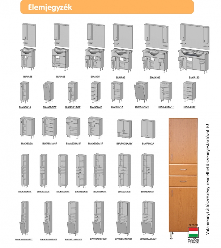 Fürdőszobabútor, a megrendeléshez kérjük válasszon korpusz- és frontszínt, illetve oldalt.