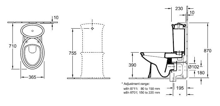 lábon álló, hátsó kifolyású, rejtett rögzítéshez szükséges rögzítőkészlettel, javaslat: szerelés faltávolsággal: 10 mm