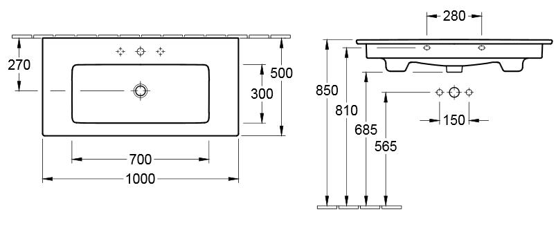 Villeroy and Boch Venticello 100x50 cm beépíthető mosdó, 1 csaplyukkal 4104AL01Villeroy & Boch